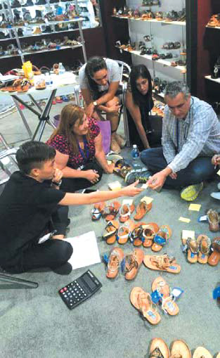 本届展会中, 中国 上蔡—河南省制鞋 产 业 基 地 成 为整 个 Footwear s0URCINC atMACIC 的最大亮点,全馆必经之路的展台位置,展位形象得到中国同行企业赞许,展位设计及展出产品得到展会主办方直接称赞,有竞争力的产品价格优势,产能优势,加之独一无二的整体特装形象更是抢尽各种风头。此次成交产品中女士凉鞋表现最佳,男士休闲鞋相对要差,据统计,现场接单穿珠凉鞋共计 21.3 万双, 女童凉鞋 1.2 万双,平底凉鞋 2 万双。