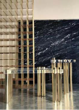 结合,充满硬朗气息,十分少见的材料使用和搭配。 还有 Noir Trading 黄铜和水晶打造的奢华吊灯。
