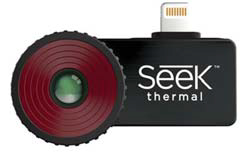 热成像,是指通过非接触非测红外能量, 并将其转换为电信号, 进而在显示器上生成热图像和温度值, 并可以对温度值进行计算的一种检测设备( 百度百科)。 热成像目前一般用于医学,这款 SEEK thermal 热成像传感镜头可以通过 mightning接口直接连接手机, 并成像,底部设置有 l2 微米的传感器。 热成像的照片可以直接上传至社交网站上 。