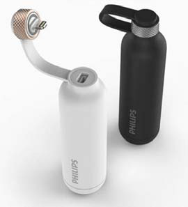 这是飞利浦打造的迷你移动电源 , 电源的外形呈现为一个"保温杯","杯盖"是能够直接连接手机的接口,"杯盖"和"杯身"之间用数据线连接 , "杯底"是移动电源充电接口以及 USB 接口 。 整个"保温杯"外部的材质为柔软的塑料,"杯口 "还有铝制的花纹,堪花手机周边里 的"颜值担当"。 另外,由于体积较 小 ,所以电池容量仅为 3000mAh , 不过足够提供一次的充电电量。