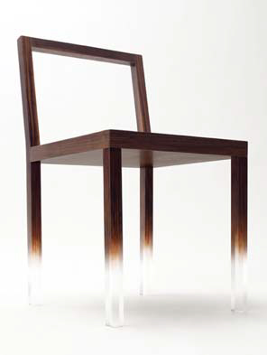 这把漂 浮 的 椅子是 由nendo 设计由,从远处 看,这些座椅仿佛都与地面分离, 漂浮于空中, 椅子在越接近地面的地方 ,颜色也慢慢消退,与地面接触的地方就完全透明 了。 这款椅子整体造型方正简洁,椅背、椅座都采用了木材 ,而四只椅子腿使用亚克力。 在亚克力上, 由工匠刷上了渐渐消退的木纹纹理。 靠着四只椅子腿的设计, 这把椅子拥有了独特的气质。 作为一把置于空间中的椅子, 它对所在空间带来了影响和变化 ,只 需将它摆在那,那微妙的观感就能让空间更纯粹通透。