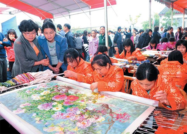 镇湖绣娘现场刺绣