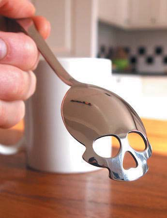 英国 Hundred Million 设计工作室设计了这款能够 帮助控制糖摄入量的骷髅糖 勺,这款勺子的尖端是骷髅 的眼睛和鼻子,每当舀起* 勺糖时,都会有一部分糖从 骷髅的眼睛和鼻子里漏下, 在一定程度上抑制了糖分的摄入。