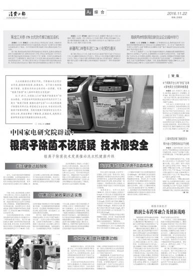 11月15日,为消除人们对“银离子除菌技术”的 安全顾虑,中国家电研究院测试技术研究所召开了主 题为“银离子除菌健康洗涤护全家”一洗衣机银( 子除菌技术研讨会,希望通过与会企业、专家对洗衣机 银(子除菌的原理、机制及银离子除菌的安全应用介 绍及分享,帮助消费者了解除菌、抗菌技术,选购真正 能够帮助家庭实现健康洗涤的洗衣机。