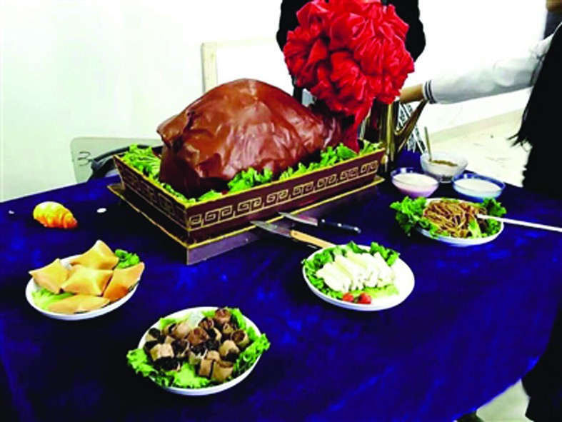 皮革制作的海鲜 皮革制作的蛋糕 “烤全羊” 皮革制作的比萨 皮革制作的牛排 澳洲西冷牛排、番茄肉酱意大利面、部队火锅、烤全羊、烤肉、甜点提拉米苏……看到这些诱人的菜名,大家会不会以为来到了一家西餐厅?不过,告诉您,制作这些“美食”的,并不是餐厅的厨师,而是来自内蒙古师范大学民族艺术学院2014级产品设计(民族工艺)专业的同学们。“饕餮盛宴”选用的“食材”也很特殊,它们竟然是——皮革。 说起用皮革制作“美食”,其实与同学们的专业有着密不可分的关系。今年大三的贺正阳参与了海鲜美食的制作,他向媒体记者介绍,因为学习的是民族工艺产品设计,所以他和同学们从大二开始接触皮革,曾经制作过皮包、箱包等工艺品。后来老师建议,想让皮革制作变得更有创意,于是大家想到了用皮革来制作美食工艺品。他们设计了西餐、海鲜、甜点、蒙餐、法餐等几个主题。制作前,他们既考虑到美食的特色性,又考虑到使用皮革制作的可能性,希望通过精心的制作,让更多人感受到皮革的魅力。 通过同学和老师们的不懈努力,一盘盘色香味俱全的“美食”就呈现在了大家的面前:彩虹蛋糕、烤全羊、肥牛、芝士、年糕、香菇、蔬菜、培根等等,非常逼真,让人一看就食欲大增。 对于同学们的创意,内蒙古师范大学民族艺术学院美术系主任阿古达木表示,强调学、研、产相结合的办学模式,是民族艺术学院的教学特色。这次老师和同学们一起创意并制作了“皮革美食”的系列作品,让同学们在实践中感受到了植鞣皮传统手工艺。这样既可以让同学们运用所学的皮革手工艺技法,又开发了同学们的想象力。 (呼 晚)