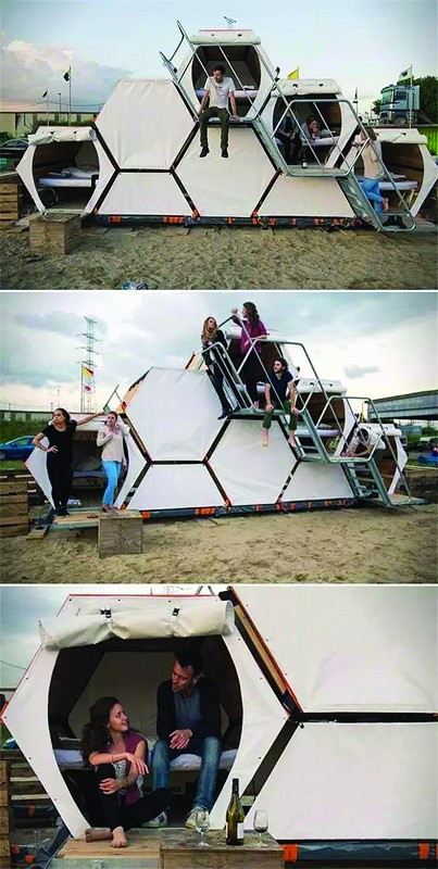 而现在的帐篷,无论是式样还是材质都发生了很大变化。冬去春来,热爱旅游的小伙伴们又可以愉快地安营扎寨了。 全透明帐篷,360度无死角欣赏美景。通过三个支点悬浮在空中,远离虫子和潮湿的地面。设计灵感源自水滴的帐篷,能挂在树干上。以蜂巢作为设计灵感,可供多人使用。 这种便携式帐篷,可供游牧民族使用,随时随地打造一个生态小家园。模块化帐篷,可不断扩大。 (普 象)