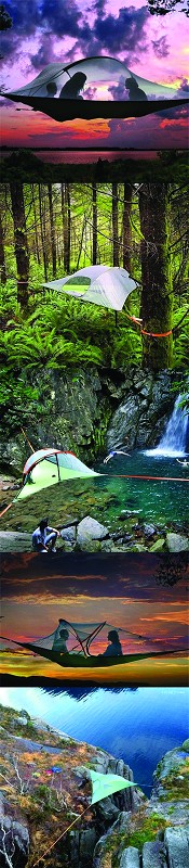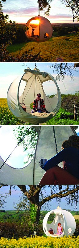 在室内使用的时候,这款吊床和传统的产品相同,可以吊起来使用。在户外的时候,同样也可以当做吊床使用。而它的另外一个用途则是可以秒变帐篷,在四周设计了帐篷支脚,可以方便用户将吊床固定在地面上使用,和普通的帐篷就相同了。球体帐篷,结构和吊挂方式可以有多种变化。