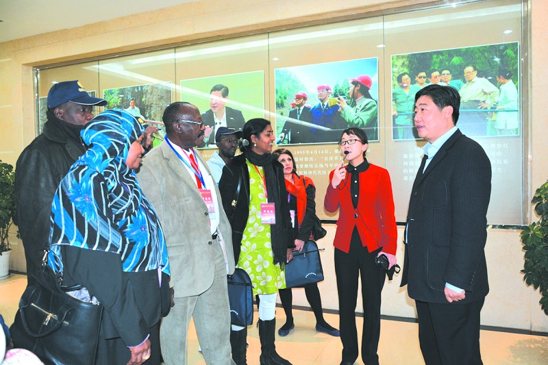 外籍学员在学院合影留念 学院常务副院长、林州市委常委、组织部部长周翔与外籍学员亲切交谈 本报记者 徐建军 □ 刘 涛 20世纪60年代,中国共产党带领30万林县儿女,靠一锤、一钎、一双手,苦战10年,削平1250座山头,架设152个渡槽,打通211条隧道,硬是在太行山悬崖绝壁上,凿出了这条1500公里的“生命之渠”,彻底改变了林县人民的命运。在这场气壮山河的伟大实践中,孕育形成了“自力更生、艰苦奋斗、团结协作、无私奉献”的红旗渠精神。弹指间,几十年过去了,红旗渠精神如一朵奋发向上的生命之花依然怒放。为了将这种卓越不凡的红旗渠精神更好的传承和发扬,红旗渠干部管理学院应运而生。近年来,在该学院全体干部职工的努力下,红旗渠精神不仅走出河南,走向全国,而且已经走向世界,因为红旗渠精神不仅是属于民族的也是属于世界的宝贵财富! 红旗渠精神永不过时 1月19日,年关将至。记者慕名来到红旗渠干部学院采访。该学院的8栋现代建筑位于林州市学院路的太行余脉,亦是开山而建,气势磅礴。在参观红旗渠纪念馆时,该学院的副院长刘建勇向记者详细阐述了红旗渠精神。 “红旗渠精神是中国精神的组成部分。她蕴含的自力更生、艰苦奋斗、不畏艰难、坚韧不拔、锐意进取、开拓创新、团结协作、无私奉献等内容,在本质上与中华民族的民族精神是一脉相承的,也充分体现了改革创新的时代风貌。这种精神不仅是我们战胜困难的坚强支撑,也是我们实现中国梦的宝贵财富。 “红旗渠精神是砥砺前行的强大精神动力。精神的力量是无穷的。林州人民在红旗渠精神的激励下,拓荒创业、不懈奋斗,谱写出了‘战太行、出太行、富太行、美太行’的创业四部曲,书写了更为壮丽的时代传奇。实践证明,红旗渠精神是伟大的、闪光的,感动着安阳,感动着河南,感动着全国,过去红旗渠精神是推动发展的精神动力,现在和将来依然是我们砥砺前行的精神动力。“红旗渠精神是践行党的群众路线的时代典范。红旗渠精神集中体现了我们党全心全意为人民服务的根本宗旨,集中体现了从群众中来、到群众中去的工作路线,集中体现了党带领人民群众为了圆梦而展现的磅礴力量,是党的群众路线教育实践活动的生动教材。” 力同心传承奋斗火炬 据介绍,红旗渠干部学院立足河南、面向全国、走向世界,开展红旗渠精神与理想信念教育、党性教育、群众路线教育等主题培训,被确定为中央国家机关爱国主义教育基地、国家行政学院公仆意识教育基地、国防大学现地教学基地、中组部全国组织干部学院现场教学基地、中国人民大学教学实践基地、河南省委组织部干部教育培训基地等。对此,院办公室主任方海潮表示:“众多成绩和荣誉的获得离不开社会各界的关心和该院全体教职工的辛苦付出。” “学院的每一个变化都凝聚着各级领导的关心与支持,无论是在基础设施建设、教学活动现场,还是在课程研发打造等方面,都提供了坚实保障。”方海潮告诉记者,“是红旗渠精神激发了全院教职工干事创业、乐于奉献的强大能量。” 据了解,随着该学院在全国知名度和认知度的不断提升,前来学院培训的全国学员越来越多,领导层级越来越高,教职工的工作压力也越来越大。特别是2016年,像“中原大地奋进曲”读书会、换届选举座谈会等,安阳市、林州市的一些重要会议和党建活动等都会放到学院,这就使他们的工作接受上级领导检阅多、指示多、任务多、规范多,并且工作要求也是越来越高。也可以说,学院现在是“马车拉着动车组”,用相对较少的人力和资源承担着国家级培训院校同样职能与功用。这就要求所有教职工必须连轴转,不过星期天;小病不请假,仍在第一线。如有的家人病重却无法回家照顾,有的妻子临产仍在加班加点,有的腰酸背疼仍在现场讲解…… 实现培训层次、地域、领域全覆盖 记者在采访中获悉,红旗渠干部学院自2013年8月建院以来,在河南省委组织部的关心指导下,在安阳市委的正确领导下,围绕建设全国一流的党性教育发展目标,深化内涵式发展,研发党性教育特色课程,改革创新实践教学模式,全面提升教学质量和管理水平,较好地完成了各项培训任务。截至目前,共举办各级各类培训班次1100余期,培训学员7.2万余人。实现了培训层次、培训地域和培训领域的全覆盖。 “红旗渠干部学院经过三年多的发展,实现上至省部级、下至乡科级学员全覆盖。仅2016年,就培训省部级学员64人,厅局级学员3649人,县处级学员19008人,乡科级学员21919人。”该院副院长刘建勇介绍说:“随着我们学院知名度和美誉度的提高,全国各地的学员纷纷涌向学院。学院培训地域已覆盖全国34个省、自治区、直辖市。截至2016年12月,省外班次361期,培训学员1.6万余人。除此之外,2016年以来,学院在承接各级党校、国家部委主体班次基础之上,不断扩展培训领域,包含了大型国企、民营企业和985高校。” 助力红旗渠精神走向世界 红旗渠干部学院按照“一带一路”发展战略,特别是中联部、中国友协等关于“讲好中国故事,弘扬中国精神”的外事培训要求,学院实行项目化运作,成立涉外培训专业团队,积极谋划“红旗渠精神走向世界”出访交流活动。 建院三年来,该学院在成功举办越南司局级党政干部培训班(2014年举办的)、2015非洲发展中国家总统顾问班的基础上,2016年