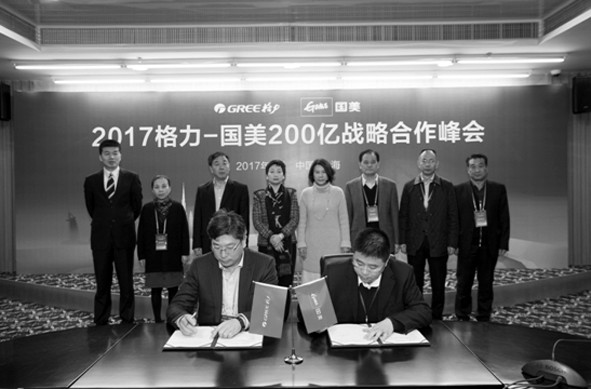 2月24日,2017年空调第一大单在珠海诞生。国美控股集团杜鹃女士与珠海格力电器股份有限公司董事长董明珠共同签署了一份“重量级”战略合作协议。2017年,国美与格力将通过国美线下门店的场景化展示、国美全渠道营销界面的融合推广、大范围强力度的营销活动,以及差异化商品的深度布局、智能空调的产品线调整等深度合作,实现格力品牌在国美全渠道年销售200亿元的战略目标。 杜鹃表示:“作为链接厂商与消费者的平台,国美实施新零售战略以来,以全渠道融合和界面延伸,建立了上游厂商与消费者的强链接,通过门店新场景的建设,为品质家电提供了更好的展示平台,为厂商高附加值的产品提供更多的通路,为消费者带来全面的智能化生活体验。” 对于今年的合作,董明珠认为:“此次会议规格之高,在格力来讲是第一次,显示了格力与国美的战略关系非比寻常,虽然今年200亿的目标很高,但是我相信,双方共同的价值观及高效的执行力,一定可以促成目标的达成。” 国美控股集团杜鹃女士与国美电器总裁王俊洲、高级副总裁郭军和珠海格力电器股份有限公司董事长董明珠、副总裁刘俊,率双方的核心高管团队近200人出席了国美&格力200亿战略合作峰会,在格力品牌与合作伙伴的合作历史中尚属首次。 ( 洹)