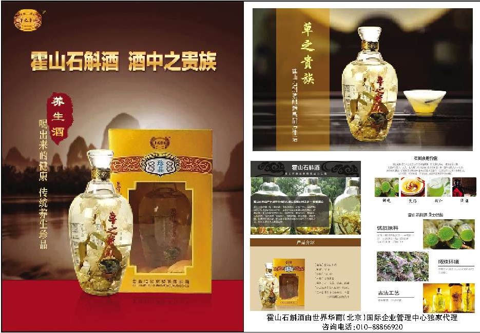 霍山石斛酒由世界华商(北京)国际企业管理中心独家代理 咨询电话:010-88866920