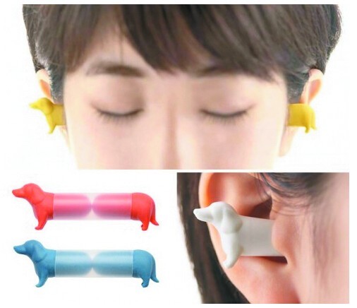 腊肠犬耳塞从一个耳朵钻进去从另一个耳朵钻出来