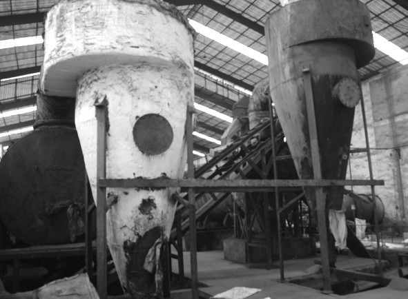 为改善此种状况,该机在造粒塔的中心处,布置了一个通风管,可以鼓入新鲜空气,也可以将装置其他工序产生的含尘尾气经除尘器除尘达标后输入到高塔内,改善造粒塔内中心区的空气循环状态,从而达到提高产量和改善粒子成型的特点。同时,也在很大程度上减少了粉尘排放造成的环境污染。