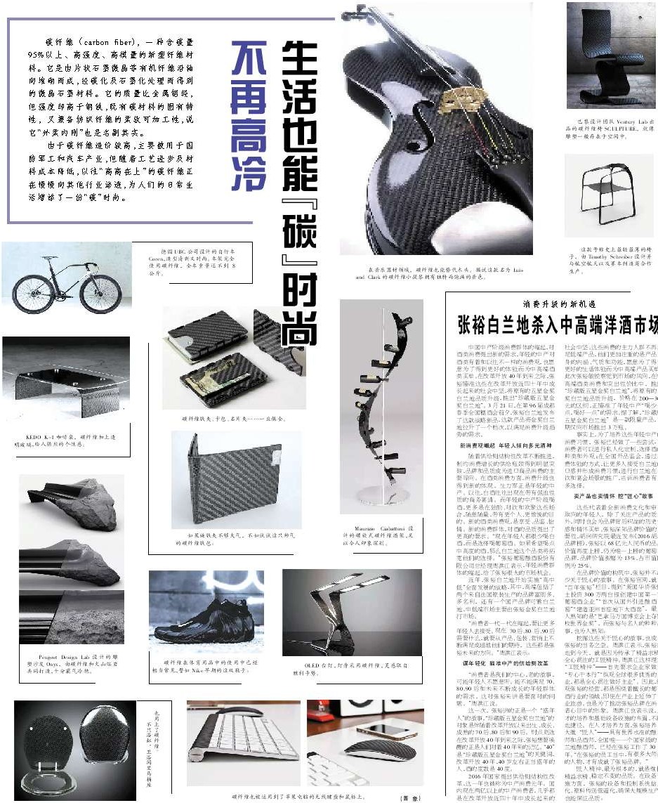 由于碳纤维造价较高,主要被用于国防军工和汽车产业,但随着工艺进步及材料成本降低,以往“高高在上”的碳纤维正在慢慢向其他行业渗透,为人们的日常生活增添了一份“碳”时尚。