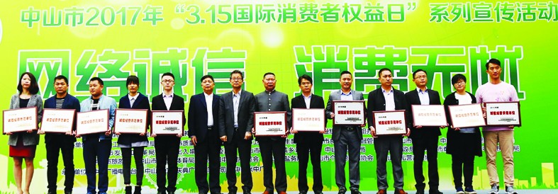 中山市共评选了2016年111家“诚信经营示范单位”,125家连续三年诚信经营示范单位,37家连续五年诚信经营试单位。3月15日上午,中山市政府副市长雷岳龙先生,广东省工商局副巡视员、广东省消委会副会长兼秘书长罗卫光及相关领导出席“3·15”活动启动仪式并担任颁奖嘉宾,向荣获称号的企业代表颁授证书,并由中山市电子商务行业协会副会长黄启均先生宣读中山市电子商务诚信联盟倡议书。