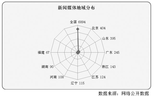 监测期内,网络媒体地域分布,北京、山东、广东、浙江、江苏、辽宁、河南、湖南、福建。