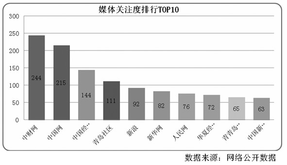 监测期内,中财网、中国网、中国经济网居榜单前三位,是最为关注保健食品动态的新闻媒体。其中,中财网出稿量244篇次,中国网出稿量215篇次,中国经济网出稿量144篇次,青岛社区出稿量111篇次,新浪出稿量92篇次,新华网出稿量82篇次,人民网出稿量76篇次,华夏经纬网出稿量72篇次,青青岛论坛出稿量65篇次,中国新闻网出稿量63篇次。