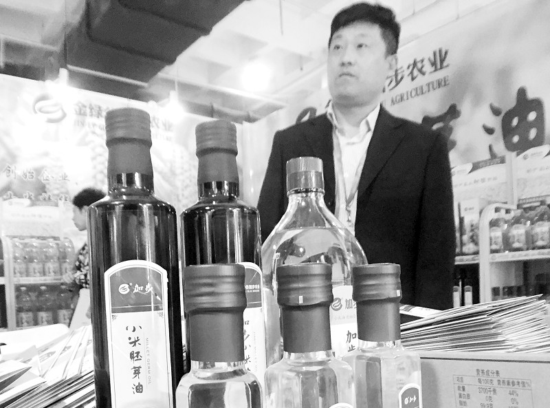 一款小米油的展台前人并不是很多,记者上前和河北金绿谷加步农业有限公司的相关负责人黄先生攀谈起来,得知这款小米油是企业刚刚研发出来的新品,这次来参加展会主要是看看市场的接受程度,宣传册上面介绍小米油的亚油酸、VE和谷维素的含量比橄榄油和花生油都要高出很多,对人体也大有好处,标出的价格为99元500ML,小米胚芽油的价格因为工艺的复杂比普通油更贵一些。红松籽油、芥花油、核桃油、芝麻油等小众油也争相斗艳亮相此次会展。