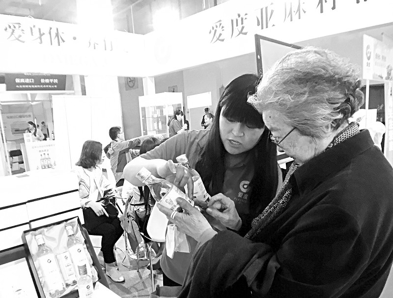 记者走进一家生产亚麻籽油的企业展台,该企业销售总监姚先生热情地为记者介绍了产品的特点。姚先生说:“亚麻籽油和橄榄油的区别在于前者含有较高的OMEGA—3,也就是一种常见于深海鱼类和某些植物中的不饱和脂肪酸,它可以疏通老年人的血管,降‘三高’,促进儿童大脑发育,提高智力,对人体健康十分有益。由于身体不能生成OMEGA—3,所以我们只能从食物中去获取。”