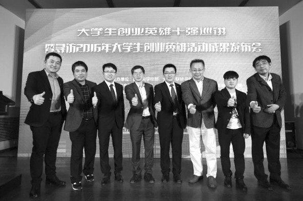 大学生创业英雄十强巡讲暨寻访2016年大学生创业英雄活动成果发布会近日在北京举办。四位2015年、2016年大学生创业英雄十强代表刘伯敏、段子明、于欣龙、朱铭强与在座的200多位大学生分享了他们的创业故事,寻访大学生创业英雄活动评委、知名创业教育专家李家华现场点评,他们围绕“大学生创新创业与中国经济发展新动能”进行对话与交流。中国青年报社副总编辑翁翔、广发证券监事长、广发证券社会公益基金会理事吴钊明等有关活动举办方嘉宾参加了活动。