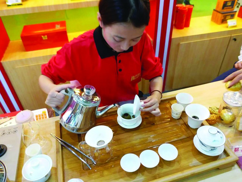 茶是用来喝的,它的味道怎么样呢?记者曾品过一款,感觉较淡。这回来到茶博会,专门在世纪茗家品了品由茶师泡的小青柑——带到展会上并由专业人士冲泡,应该是“极好的”。不过,口感依然是清淡,比之传统柑普的淳厚、顺滑、柑香,没有突出特色,而且有点麻口。品茶适口为佳,很多老茶客并不追捧这个口味,但一定有不少人喜欢它的“小清新”。小青柑的时尚元素还包括冲泡方便。传统柑普一颗25—30克,需捏碎分几次泡,小青柑一颗10—15克,一次一颗,在北方,能泡上一天。