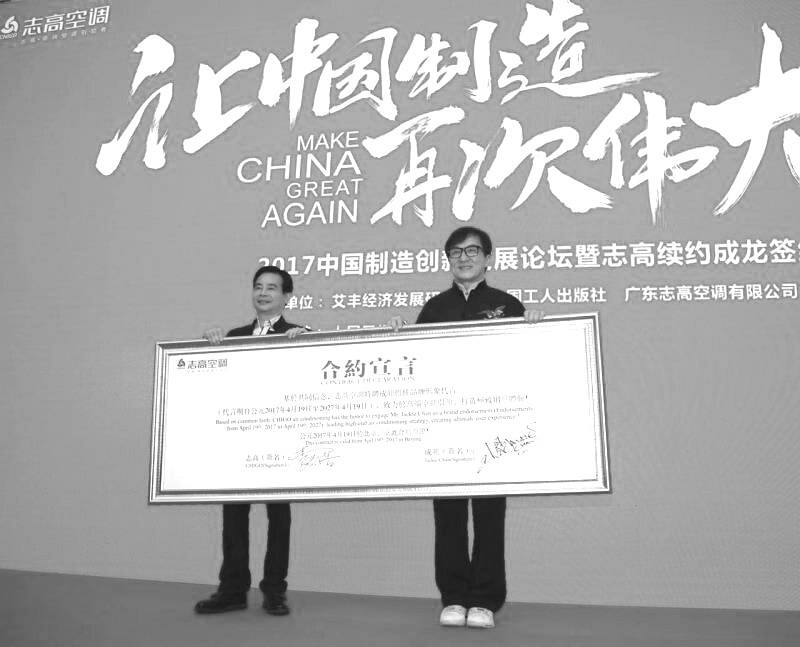此次志高空调续约国际巨星成龙,并将合约从传统企业明星代言的1—2年时间,一跃锁定为10年时间。此前的2014年底,志高空调首次签约成龙为品牌代言人,自此开启了“高端引领”大幕。