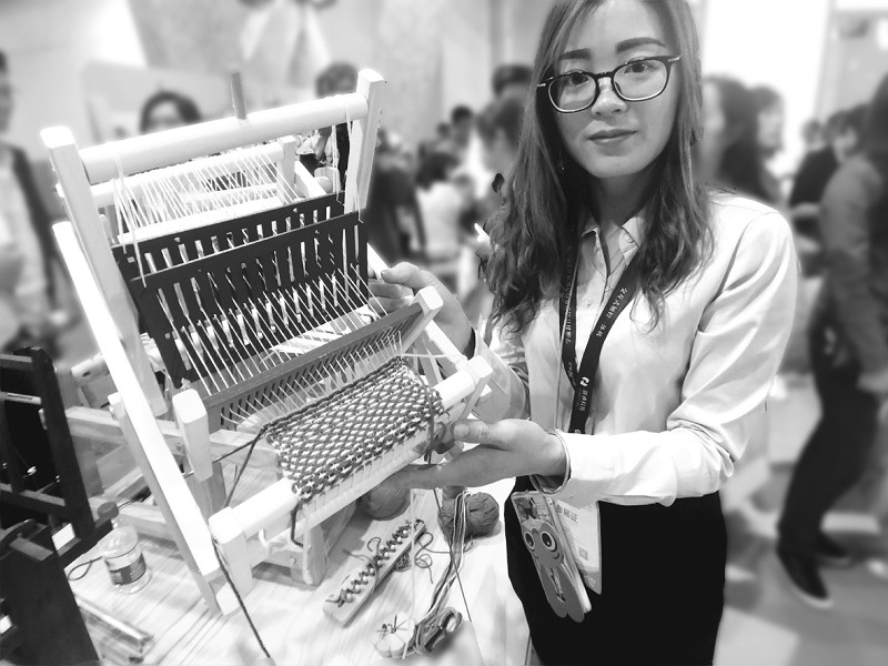 在优优象创客工坊展台前,记者看到墙上挂满了锯、锤子、锣丝刀等木工专用工具。有一位妈妈带着孩子正在体验木工制作,把木板放到车床上,根据上面画的线条锯出图案,记者不免有些担心,这要是锯到手该怎么办,工作人员表示,这一套工具是针对幼儿园开发的,非常安全,就是锯到手指也不会受伤,说完把手指放到锯上,果然一点痕迹都没有。“这些木工工具和织布机,我小时侯也没见过,更别提玩了”,一位家长表示。