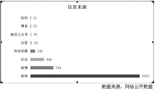 在月度监测周期内,网络新闻3552条,微博749条,论坛446条,传统纸媒148条,问答50条,微信公众号35条,博客22条,贴吧21条。