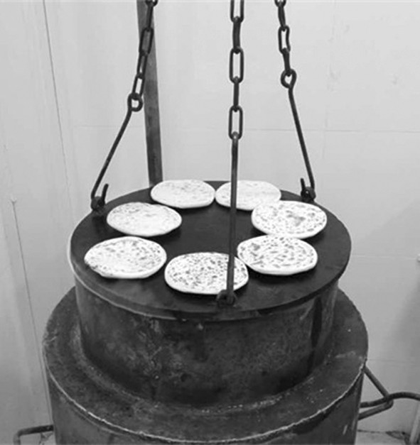 次日,武则天到达缑山。潘老汉连忙捅开煤火,更衣洗手,可他打开面缸一看,发面所剩不多,无法烙饼。情急间,潘老汉灵机一动,和了一大块死面,反复揉搓,用擀杖擀成面胚,抹上调料、麻油,放于鏊子上烙烤。潘老汉将烙熟的烧饼切口,夹入自制的猪头肉送至缑山,武则天一吃,大为赞赏,赐银百两,犒赏潘老汉。自此这道美食名扬中原,相传至今。
