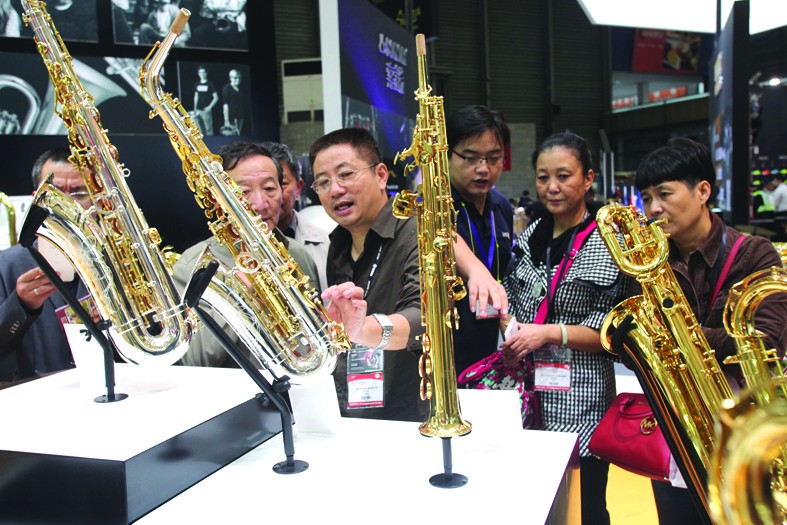 据中国轻工业经济运行预测预警系统数据显示,2017年1-3月,我国乐器行业出口额为2.91亿美元,同比下降 0.89%;进口额7923.93万美元,同比增长6.55%。其中,乐器行业对“一带一路”沿线国家出口额占20.6%,为5989.7万美元,同比增长11.29%;从“一带一路”沿线国家进口乐器2479.3万美元,同比增长0.13%,占乐器行业进口总额的31%。 (本报记者 陈丽光/摄)