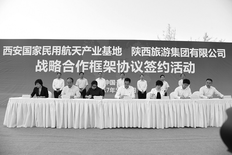 本报讯 (记者樊春勤)5月27日,陕西旅游集团有限公司与西安国家民用航天产业基地管委会战略合作协议签订活动在航天揽月阁广场举行。