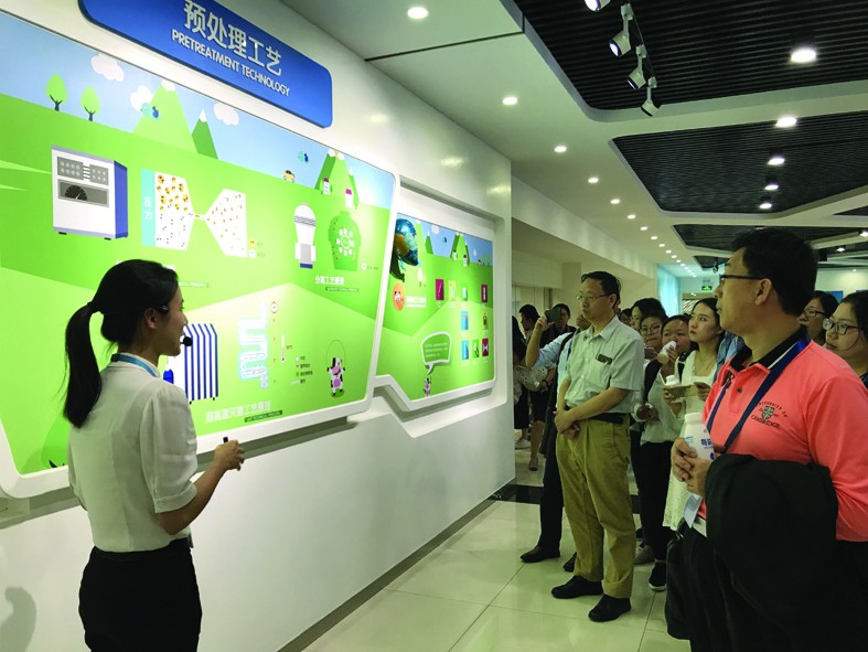 不只是灌装,在伊利,就连仓储系统也是自动化管理。在仓储区一侧,记者看到一组机械手正在井然有序地挥舞着强壮的“手臂”,自动进行码垛。每个机械手控制三条流水线,每150箱码成一垛。机械手内部装有电子眼,可以根据生产品项和产品规格的不同,自动选择码放程序,每台机械手可以代替60个人力。另一侧,则是无人驾驶小车和高达四五层楼高的堆垛机相配合。据现场工作人员介绍,小车通过轨道碳刷和导电轨运行生电原理自动前行,空载运动性速度能达到每分钟200米,满载的运行速度是每分钟160米。小车在减速过程中,还可以利用惯性发电,向电网回馈30%的电能。 (下转A2版) 第12届益生菌与健康国际研讨会参会人员参观伊利液态奶生产基地