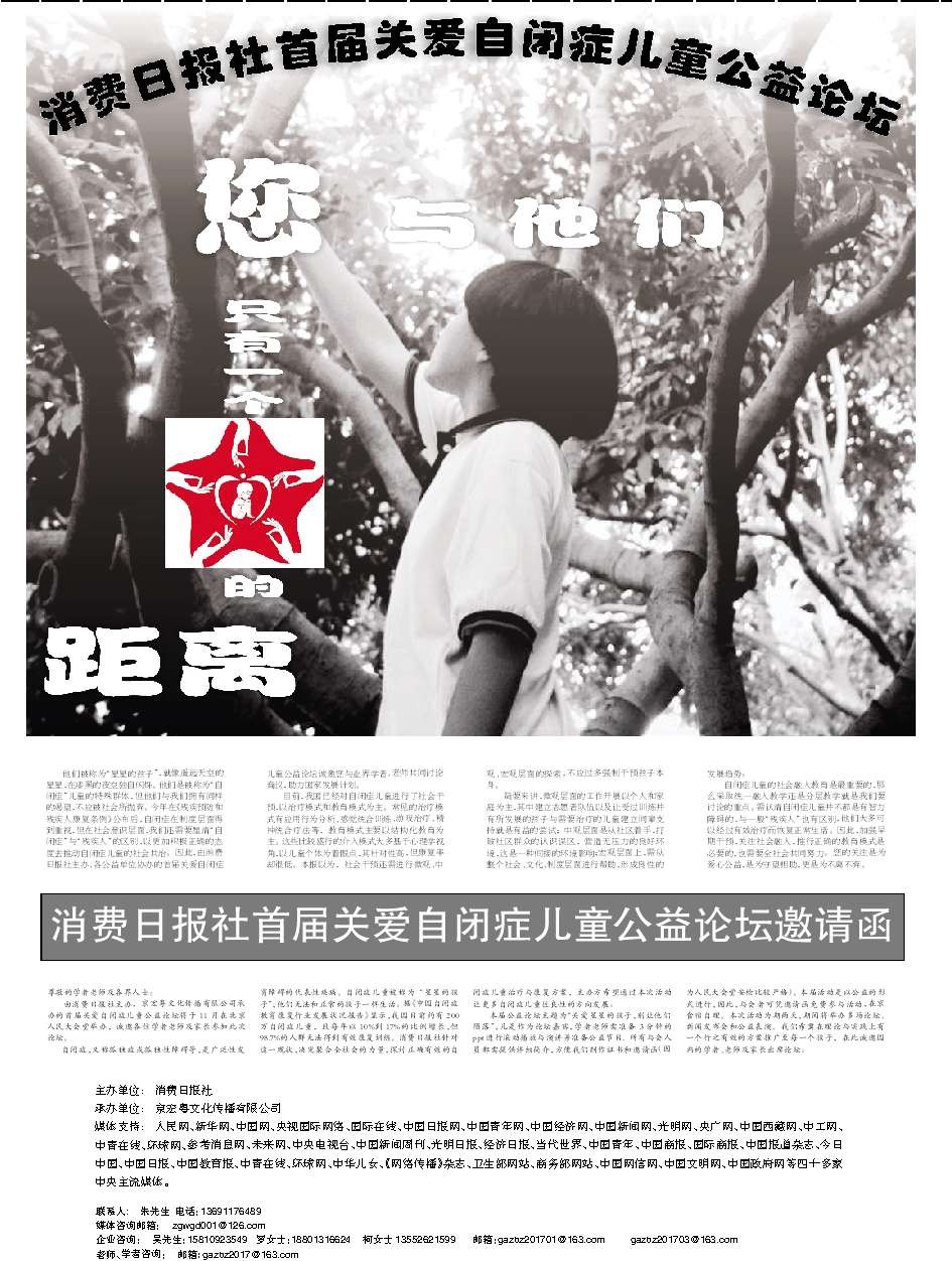 消费日报社首届关爱自闭症儿童公益论坛邀请函