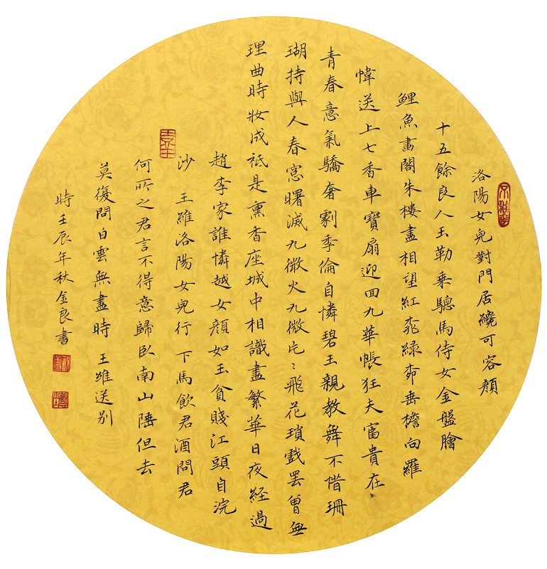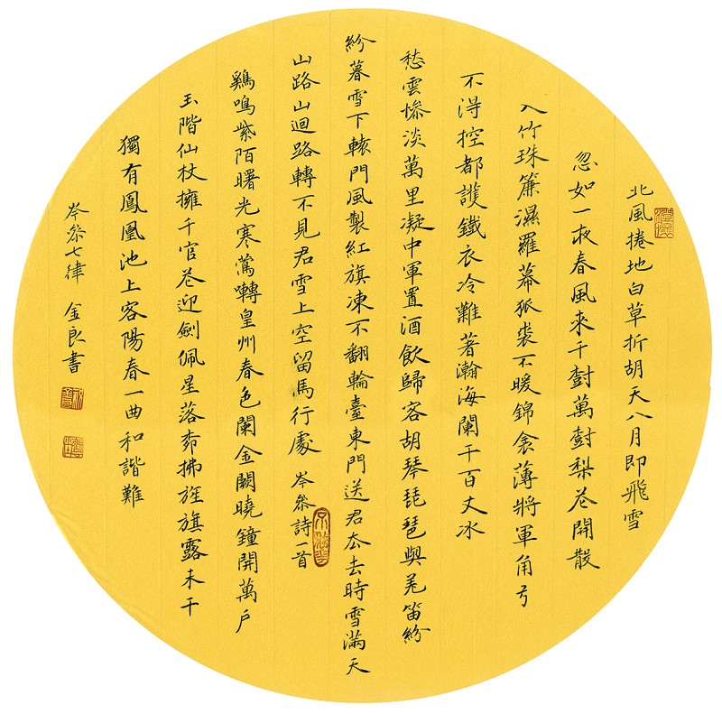 祝金良先生学习书法已数十年矣,虽无创作的成就和建树,却有坚守的刚毅和坚韧。在这个人心浮躁的时代里,的确很少有人将一颗幼苗,坚守成挂满花果的树冠,然后以玉树临风的姿态去承接岁月,也很少有人能坚守着一小簇小花,以丝毫不变的诗意,去迎送循环往复的春秋。如果真能做到,那将是非常了不起的高贵和伟大。而在先生看来,只要能坚守,便能获得一生的愉悦和享受。这段富有诗意的感言,深情地道出了先生对小楷创作和对追求书法艺术乐观自信的态度。