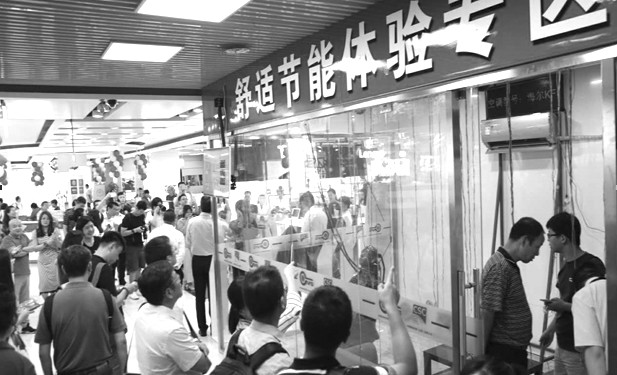 由透明玻璃搭建的实验室,主要对空调环境舒适性进行试验,卖场中这个区别于家电展示区的“大家伙”,吸引了众多消费者的关注,不少人跃跃欲试。“以往挑选家电,最主要是听导购介绍,说明书上的专业术语和标准很难理解。现在门店建起实验室,不仅可以亲身感受效果,还有实时数据对比,真的不错。”走出实验室的陈先生表达了自己的看法。