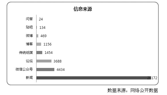 消费日报社舆情中心对网络新闻、微博、论坛、传统纸媒、博客、贴吧、问答、微信公众号等信息进行全网络检测,在2017年7月1日-2017年7月31日期间,共有电商行业的传播量共计39554条,正面信息7816条,中立信息30432条,负面信息1306条。其中新闻的传播量最多,28172条,新闻传播量28172条、微信公众号传播量4434条、论坛传播量3688条、传统纸媒传播量1454条、博客传播量1156条、微博传播量469条、贴吧传播量134条、问答传播量24条。