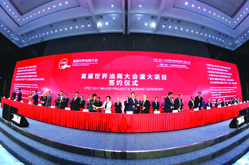 浙江省委副书记、省长袁家军介绍说,浙江是中国大型成品油炼化基地之一,原油加工规模居全国第四位,产值亿元以上的石化企业达到3600多家。袁家军说,“舟山群岛累计引进油品贸易企业781家,油品储备能力已经超过1950万吨,总投资1730亿元的国际绿色石化基地炼化一体化项目将于2020年建成投产。”未来,浙江自贸试验区将建成国际油品交易中心,实现“三个一亿吨”——一亿吨油品储备能力、一亿吨炼油能力、一亿吨交易能力。