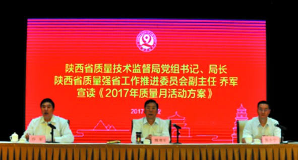 2017年 9月4日,陕西省质量强省工作推进委员会在西安举办2017年陕西省“质量月”活动启动仪式暨“QC”活动现场推进会。陕西省强省委主任、副省长魏增军出席活动并作重要讲话,陕西省强省委副主任、省政府副秘书长张小宁主持会议,陕西省强省委副主任、省质监局局长乔军宣读2017年陕西省“质量月”活动安排。