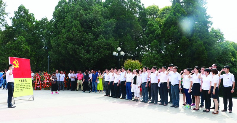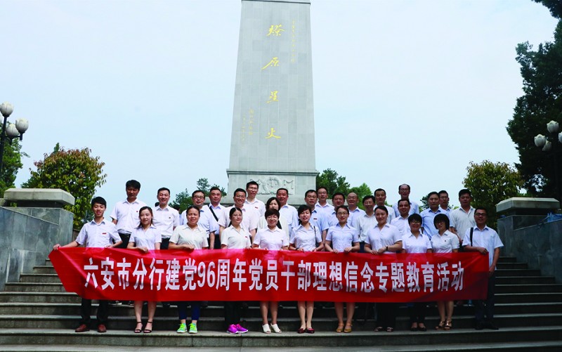 “七一”前夕,分行党员以寄语的方式,祝福党的生日 分行党委领导班子在年初布置党建工作 获“2016年度优秀共产党员”的同志合影 分行党员代表在金寨红军广场革命烈士纪念碑前重温入党誓词