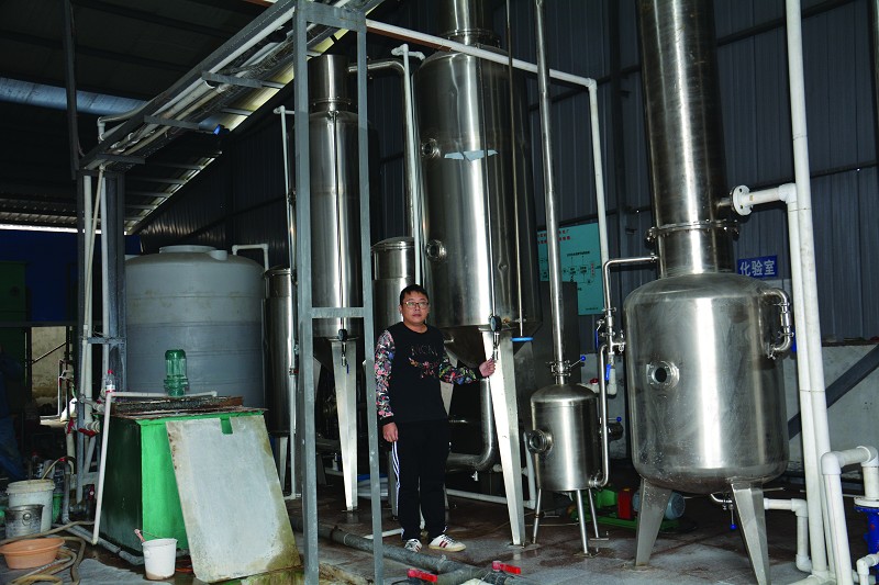 夏火生介绍,环保不仅仅是一项支出,也是一种回报。他们已按照环保部门的要求,在老厂房的基础上,精心进行了改建和改造。该厂为进一步做到生产中达标排放废水废气,近年来先后投入近千万元,进行大力整治,努力把车间废气通过吸收塔吸收、药剂处理反应,达标后再排放。对车间生产中产生的废水,通过管道引进污水设备处理池、经过中和池、通过混凝反应、斜管沉淀池沉淀后进入中间水池,通过药剂处理反应,把经过锰砂过滤器、活性炭过滤器过滤后的水送入水池,然后再通过蒸发(1.加热器2.蒸发器3.气液分离器4.冷凝器5.冷却器6.受液体罐7.除沫器8.真空泵),经过技术检验确定达标后不外排,再进行循环使用,这样既节约了生产用水也不会造成污染。