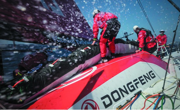 陈锦浩作为参加第一个赛段的中国船员,他说:“感谢东风汽车公司,感谢夏尔船长,感谢队友的信任,让我再次作为东风队的一员,代表中国参加沃尔沃环球帆船赛。”“3年前,当我第一次入选东风队训练营时,夏尔船长问我‘敢不敢到船头做前甲板工作?’我毫不犹豫地答应了。很多人不理解,因为船头是潮湿、寒冷、危险的代名词。但我做梦都想参加这场全球最顶级的远航赛事!哪怕是最危险的位置我都义无反顾。”陈锦浩补充道。