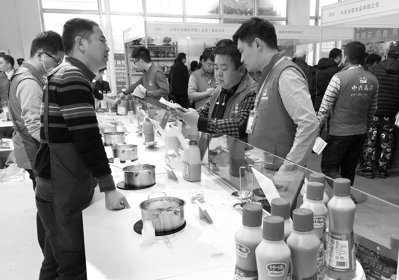 在“牧哥杯”第四届中国(北京)火锅食材用品展上,各种食材、底料、小料等火锅用品细化程度让人感叹。可以说,对于现在的90后“懒人”简直是“体贴”到家了。不出门,就可以好好涮一顿。 本报记者 陈丽光 摄