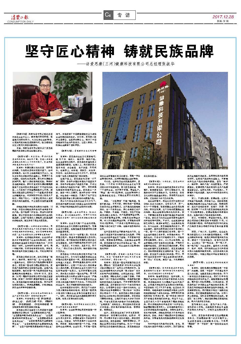 日前,消费与法专刊记者采访了爱思康健康科技有限公司总经理张淑华。