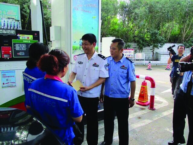 9月26日上午,中国石化南京乐山路加油站里来了几位特殊的客人,给加油站员工黄开莉、丁艳送上奖金。原来,这几位特殊的客人正是南京市公安局内保支队民警,此次来到加油站,是为表彰员工黄开莉和丁艳及时制止汽油违规灌桶行为,“面对私自加灌油桶的举动,你们坚决拒绝,及时制止,这样的行为值得表彰。”
