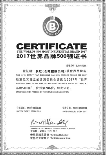 日前,2017年“中国品牌年度大奖”在北京颁发,并揭晓2017年度(第十四届)“世界品牌500强”排行榜。国家电网、腾讯、海尔、华为、长虹等37个中国品牌入选“世界品牌500强”,其中,长虹位列286名,排名连续五年攀升。同时,长虹荣获2017年“中国品牌年度大奖NO.1”(电视行业)荣誉称号。“近年来,伴随长虹转型升级,进一步释放自身能力,向消费者和企业,两大‘用户’群体提供产品与服务。”长虹相关负责人表示,在能力输出过程中,或将产生新的产品与服务,甚至孵化出新商业模式。