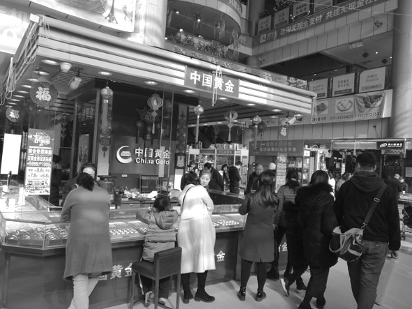 西北轻工批发市场是西北地区规模较大、档次较高、品种多、价格低、配套设施完善的商品批发基地。一进中央大门,首先看到的是黄金首饰专卖店,店面牌子上“黄金免费换新,买黄金珠宝送钻戒”几个字格外引人注目。营业员介绍说,新年买黄金首饰大优惠,买1件8.8折,2件7.8折,3件6.8折,比平时便宜多了。