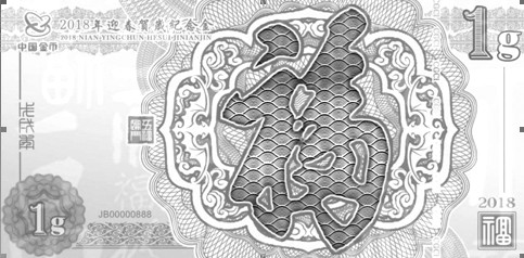“2018年迎春贺岁纪念金(银)卡”将传统贺岁文化与喜庆祥和、平安富贵、喜上眉梢等吉祥图案相互融合,传递吉祥快乐、万事如意、大吉大利等寓意。1克金卡、3克及5克银卡共用正面图案以康熙手书“福”字为主图,内包含水纹,象征福如东海与五福临门之意,下方为装饰的蝙蝠纹样,富贵华丽。1克金卡、3克及5克银卡共用背面图案以营造“家”的概念为主题,透过窗户,呈现出千家万户的繁荣景象,炊烟袅袅,喜上眉梢,一派温馨祥和的气氛。