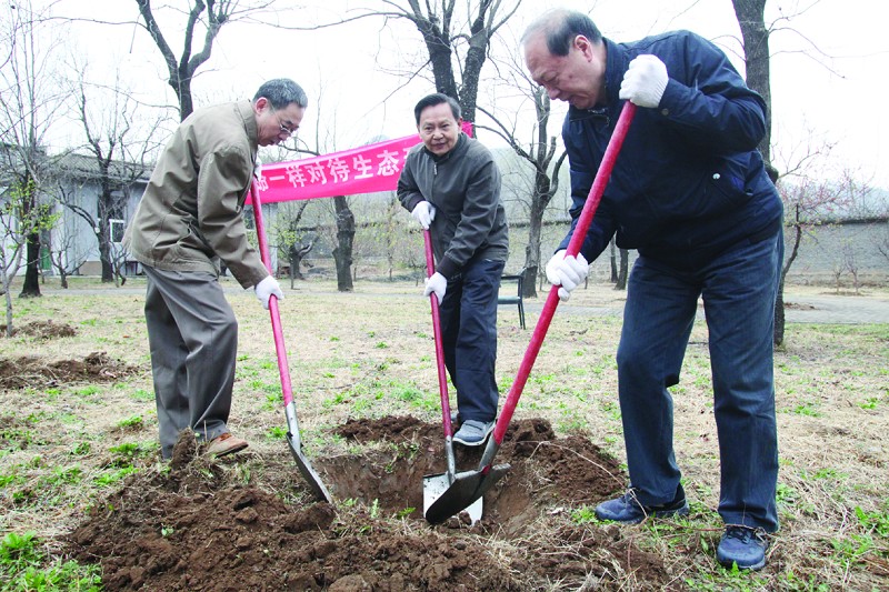 本报讯 (记者 陈丽光 文/摄)细雨润如丝,正是植树好时节。4月13日,中国轻工业联合会会长张崇和、党委副书记王世成、秘书长杜同和,国务院国资委机关服务管理局局长张文宏,轻工业部老部长曾宪林等同志来到北京十三陵轻工绿化基地,参加2018年春季义务植树活动。