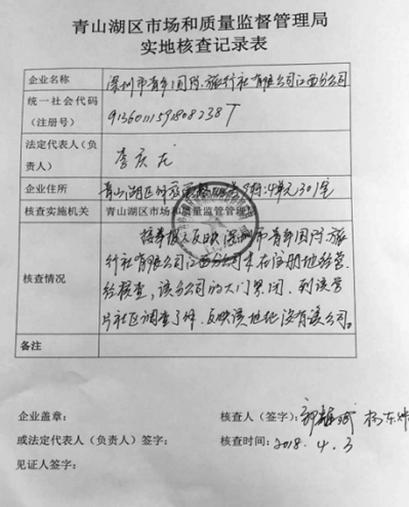 截至记者发稿,南昌市市场和质量监督管理局已将赣中旅、深青旅江西分公司列入经营异常名单。