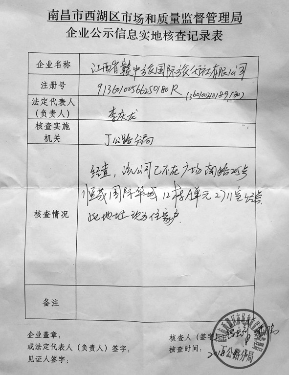 乱象三:“赣中旅”和“深青旅江西分公司”已是人去楼空,法人代表和负责人同是李庆龙