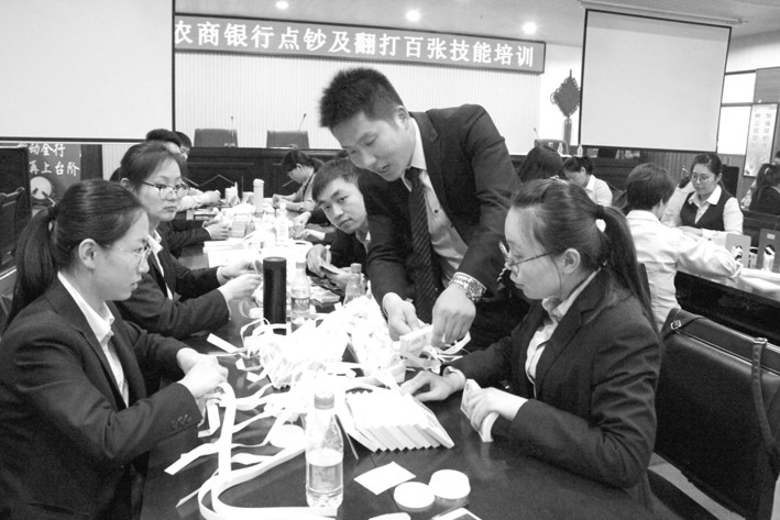 为提高内部员工业务技能水平,推动柜面服务更加快捷、高效,4月20日至21日,江苏丰县农商银行聘请专业公司对点钞、翻打百张技能两项技能进行专题培训,主要讲解手持式单指单张点钞的基本手法和技巧,从坐姿、指法、翻页速度及准确率、眼手脑协调并用四个方面提高翻打百张技能,通过科学方法和强化训练的有益结合,有效地促进内部员工点钞、翻打传票技能水平的快速提升。 (邓 敏 谢 慧)